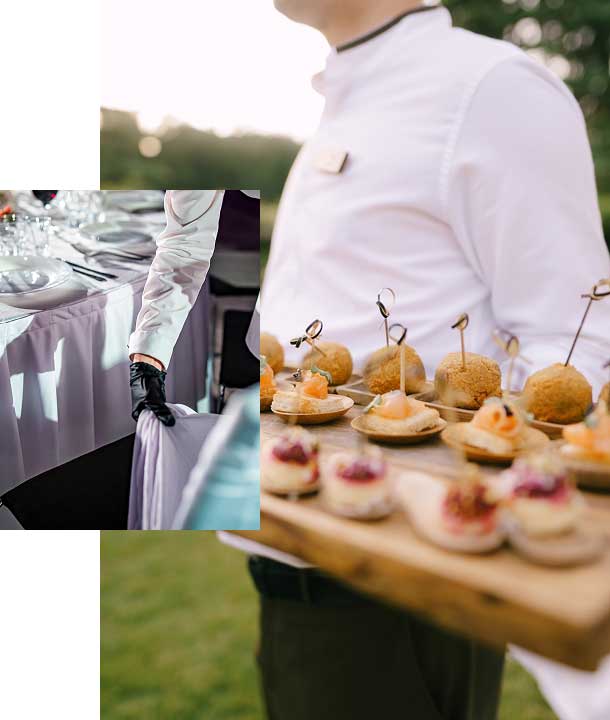 Le jour de votre événement, nos équipes prennent en main chaque étape : installation et dressage, accueil, serLe jour J, toute la partie « service » est totalement prise en charge par nos chefs d’équipe, maîtres d’hôtel expérimentés qui supervisent les équipes et garantissent une prestation fluide, élégante et irréprochable.